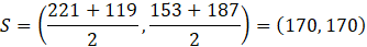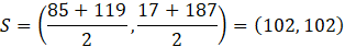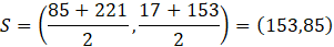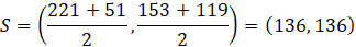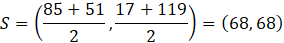 Wyznacz odcinki, których środek znajduje się na proste y = x, wiedząc, że wskazano cztery punkty: A(85, 17), B(221, 153), C(119, 187), D(51, 119), gdzie każde dwa zostały połączone odcinkiem.