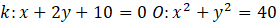 , wiedząc, że prosta o równaniu x + 2y + 10 = 0 ma z okręgiem o równaniu