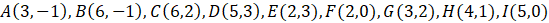 Wyznacz trzy pary czworokątów symetrycznych, których wierzchołkami mogą być punkty spośród: