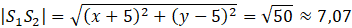 Wyznacz odległość między środkami podanych okręgów ze wzoru