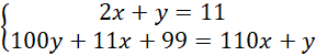 Postać liczby: 100y + 10x + x = 100y + 11x