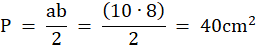 Wiedząc, że trójkąt jest prostokątny, skorzystaj ze wzoru i oblicz jego pole.