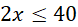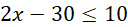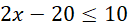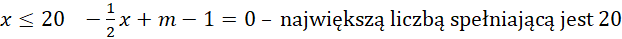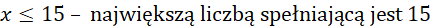 Liczba 20 jest największą liczbą spełniającą nierówność 2x-k ≤10, gdy: B. k = 30.