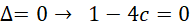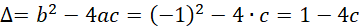 Tylko jedno rozwiązanie ma równanie x2 – x + c = 0, gdy:
