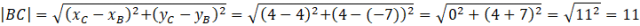 Przyjmij, że A = (-2, 4), B = (4,-7) i C = (4,4)