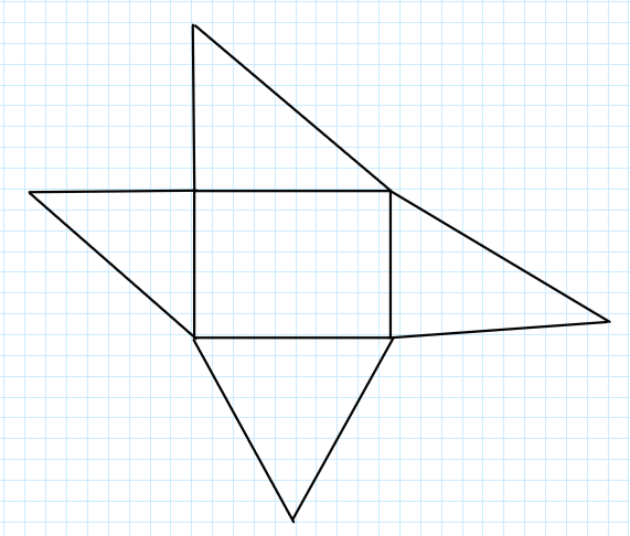 Narysuj siatkę ostrosłupa, jeśli jego podstawą jest prostokąt o bokach długości 4,5 cm i 3,5 cm, a jedna z krawędzi bocznych jest prostopadła do płaszczyzny podstawy i ma długość 4 cm.