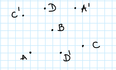 Punkt A' jest symetryczny do punktu A względem punktu S (A' jest obrazem punktu A w symetrii względem punktu S) jeżeli: