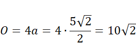Odpowiedź: Obwód kwadratu o przekątnej długości 5 jest równy A.