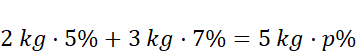 Wyznacz stężenie procentowe roztworu, który jest mieszaniną 5% roztworu soli w ilości 2kg oraz 7% roztworu soli w ilości 3 kg.