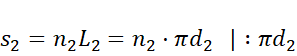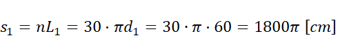 Wyznacz drogę, jaką pokonało duże koło, wykonując obroty. Oblicz ją jako iloczyn ilości obrotów i długości jego okręgu. Droga przebyta przez małe koło jest taka – wzór ją opisujący jest analogiczny. Wyznacz z niego liczbę obrotów.