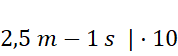 Zmieniając jednostkę szybkości z m/s na km/h wystarczy, że przemnożysz wartość przez 3,6. Wiedząc, że wyciąg pokonuje 2,5 m w ciągu 1 s wyznacz z proporcji, w jakim czasie pokonuje trasę 375 m. Następnie przedstaw ten czas w minutach, wiedząc, że 1 min = 60 s.