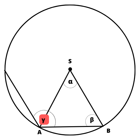 Zakładając, że wierzchołki danego wielokąta foremnego znajdują się na okręgu o środku S, a cięciwa AB jest bokiem tego wielokąta, oblicz miarę kąta wewnętrznego tego wielokąta (kąt ASB ma miarę
