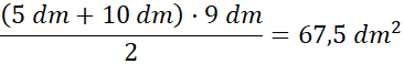 Oblicz pole jednego stolika oraz sumę pól 10 takich blatów, wiedząc że blat ma kształt trapezu o jednej podstawie długości 5 dm, a drugiej 2 razy większej i wysokości o 1 dm krótszej od dłuższej podstawy.