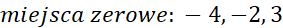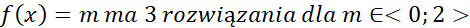 Odczytaj z wykresu własności funkcji. Na wykresie dziedzina funkcji to zbiór wszystkich x-ów dla których funkcja istnieje, a zbiór wartości to zbiór wszystkich y-ów. Miejscem zerowym funkcji jest taki argument x, dla którego wykres przecina oś x. Liczbę rozwiązań równania f(x)=m w zależności od warunku m możesz określić, oceniając ile razy pozioma prosta y=m przecina wykres f(x).