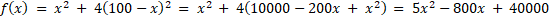 Zapisz liczbę 100 za pomocą sumy dwóch liczb, gdzie suma kwadratu pierwszej liczby i kwadratu podwojonej drugiej liczby była możliwie najmniejsza.