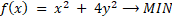 Zadanie optymalizacyjne rozwiązujemy wpierw podając założenia dotyczące liczb x i y oraz uzależniając jedną zmienną od drugiej. Następnie tworzymy funkcję celu – suma dąży do minimum. Określamy współczynnik a oraz p i porównujemy z założeniami.