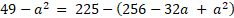 49 = 225 – 256 + 32a