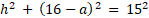 Najkrótsza wysokość będzie opuszczona na najdłuższy bok, czyli bok o długości 16. Niech spodek wysokości h dzieli bok o długości 16 na dwa odcinki o długościach a i 16 – a. Wylicz