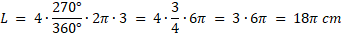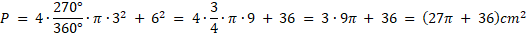 Oblicz obwód figury jako długość czterech łuków o kącie środkowym