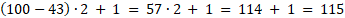 Najmniej punktów wspólnych ta prosta będzie mieć, gdy będzie styczna do okręgu o promieniu 43. Będzie ona mieć wtedy po 2 punkty wspólne z okręgami o promieniach od 44 do 100 i jeden punkt wspólny z okręgiem o promieniu 43. Łącznie 115 punktów wspólnych. Najwięcej punktów wspólnych prosta m będzie miała z tymi okręgami, kiedy przejdzie przez środek O i punkt P. Wtedy z każdym promieniem będzie miała po dwa punkty wspólne. Łącznie 200 punktów. Prosta m może mieć tez inną liczbę punktów wspólnych z okręgami, ale zawsze będzie to liczba większa od 115 i mniejsza od 200.