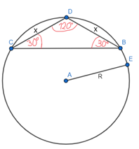 Opisano koło na trójkącie równoramienny, który przy podstawie ma kąt