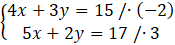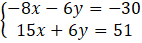 -8x - 6y + 15x – 6y = -30 + 51