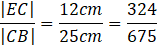W zadaniu należy skorzystać z twierdzenia odwrotnego do twierdzenia Talesa które mówi o tym, że jeśli przetniemy ramiona kąta dwiema prostymi i stosunki odpowiednich odcinków powstałych w ten sposób są równe to te proste są równoległe. Trapez to figura, która posiada co najmniej jedną parę boków równoległych, przedłużenia boków AD i BC przecinają się w wierzchołku kąta zatem nie są równoległe. Pozostaje zatem sprawdzić z Twierdzenia odwrotnego czy odcinki DC i AB są równoległe. Wykorzystujemy do tego stosunek długości odcinka od wierzchołka kąta do pierwszej prostej do odcinka między prostymi na tym samym ramieniu kąta oraz taki sam stosunek na przeciwnym ramieniu. Obliczam oba stosunki a następnie sprowadzamy je do wspólnego mianownika, aby móc je przyrównać. W tym celu wyznaczamy najmniejszą wspólną wielokrotność mianowników, jest ona równa 675 zatem rozszerzamy ułamki tak aby oba miały w mianowniku 675. Przyrównując ułamki zauważamy, że są one różne. Proste nie są zatem równoległe a z tego wynika, że figura ABCD nie jest trapezem.