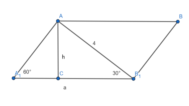 W tym zadaniu oblicz pole danego równoległoboku, jeśli jego kąt ostry ma miarę 60° wiedząc, że jego krótsza przekątna ma długość 4 cm i dzieli go na dwa trójkąty prostokątne.
