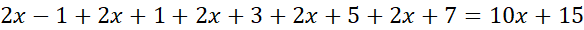 Liczby nieparzyste występują na zmianę co drugą liczbę, więc jeśli jest pierwszą liczbą nieparzystą, to kolejna jest postaci itd. Suma pięciu kolejnych liczb nieparzystych jest zatem równa: