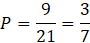 Jest 21 przyborów do pisania. Przyborów piszących na czerwonych jest 9. Prawdopodobieństwo wyjęcia przyboru piszącego na czerwono jest równe