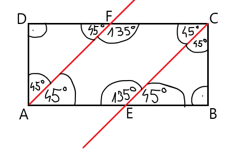 W prostokącie, który nie jest kwadratem, poprowadzono dwusieczne dwóch kątów, które są przeciwległe, na rysunku 1. Podaj miary kątów czworokąta AECF.