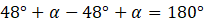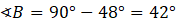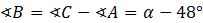 W trójkącie ABC największą miarę posiada kąt przy wierzchołku C. Miara kąta przy wierzchołku A wynosi 48°, a miara kąta przy wierzchołku B jest równa różnicy miary kąta przy wierzchołku C i miary kąta przy wierzchołku A.