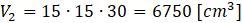 Oblicz objętość większego graniastosłupa, kolejno oblicz objętość mniejszego graniastosłupa. Na koniec od objętości pierwszego graniastosłupa odejmij objętość drugiego graniastosłupa, aby obliczyć objętość elementu.