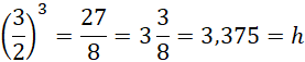 Liczba h jest większa od 3, ale mniejsza od 4: