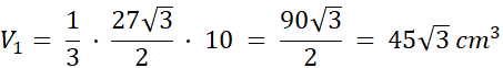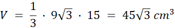 Ostrosłup prawidłowy trójkątny ma podstawę o boku 6 cm oraz wysokość 15 cm. Ostrosłup prawidłowy sześciokątny ma podstawę o boku 3 cm oraz wysokość 10 cm. Oblicz, który ma większą objętość.