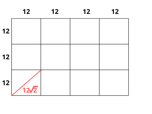 Jaki był obwód prostokąta, jeśli gdy podzielimy go na 4 części wzdłuż dłuższej krawędzi i 3 wzdłuż krótszej, przekątna wyniesie:
