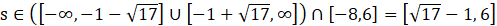 Korzystamy z twierdzenia Pitagorasa. Boki prostokąta przecinają się pod kątem prostym, wiec długość przekątnej, to pierwiastek z sumy kwadratów długości boków. Sprawdzamy jaka jest dziedzina tej funkcji, zakładając że wartość pod pierwiastkiem jest nieujemna. Następnie, sprawdzamy dla jakich argumentów jej wartości są większe niż 6. Obliczamy równanie standardowymi metodami, a wynik weryfikujemy wraz z przedziałem dziedziny.