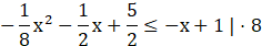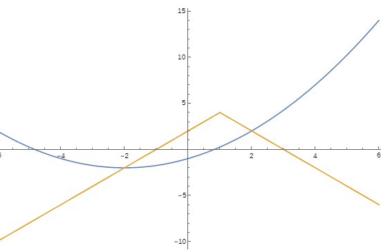 Stawiamy pod odpowiednich stronach nierówności wzory funkcji f i g, a następnie rozwiązujemy nierówność z wartością bezwzględną z