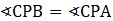 Z rysunków wnioskujemy że kąty CPB oraz CPA są równe. Natomiast kąty APC oraz CBP są ulokowane w oparciu o ten sam łuk, więc również są równe. Suma kątów wewnętrznych w każdym trójkącie jest równa. Zatem trójkąty PCA oraz PBC są podobne.