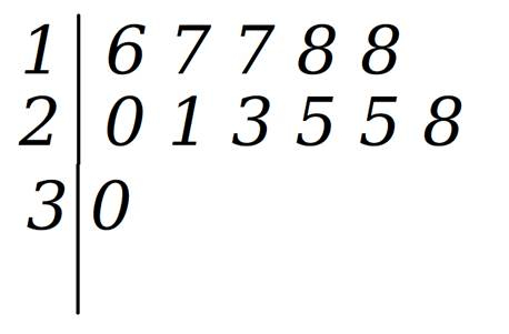 W tym zadaniu musisz przedstawić wyniki Jacka w formie diagramu łodygowo-listkowego, jeśli wiadomo, że masy zmierzone przez Jacka to: 23, 18, 18, 20, 17, 16, 21, 17, 30, 28, 25, 25.