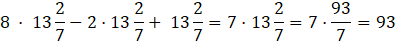 Aby obliczyć wartość tego wyrażenia, zgrupowano wyrażenia podobne, a następnie wykonano mnożenie liczby przez ułamek.