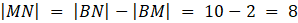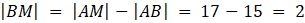 Dany jest okręgi, jeden o promieniu 17 i środku A, i drugi o promieniu 10 i środku B. Odcinek AB ma długość 15. Jaka jest długość odcinka MN?