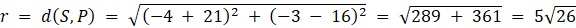 Równanie okręgu o środku w punkcie S i promieniu r to: