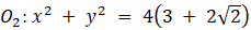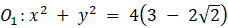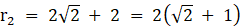 Długość promienia drugiego okręgu jest równy sumie odległości np. punktu A od początku układu współrzędnych i długości promienia okręgu o środku w punkcie A, czyli: