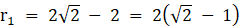 Długość promienia pierwszego okręgu to różnica pomiędzy odległością np. punktu A od początku układu współrzędnych i długością promienia okręgu o środku w punkcie A. Wynosi on: