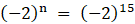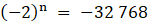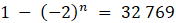 Dla n = 15 początkowych wyrazów ciągu geometrycznego spełniającego podane warunki ich suma wynosi 32 769.