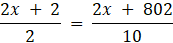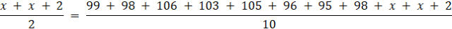 Niech x i x + 2 będą długościami dwóch ostatnich skoków. Zgodnie z opisanymi w treści wartościami średnich można zapisać równość: