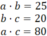 Ułóż równanie do trzech niewiadomych, wykorzystując wzór na pole prostokąta. Wylicz długość krawędzi prostopadłościanu i zastosuj wzór na objętość graniastosłupa.