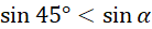 Ponieważ funkcja sinus jest rosnąca i różnowartościowa dla