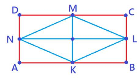 Powinieneś zauważyć, że pole czworokąta KLMN tworzą 4 przystające trójkąty. Natomiast pole prostokąta ABCD tworzy 8 takich trójkątów. Zatem: